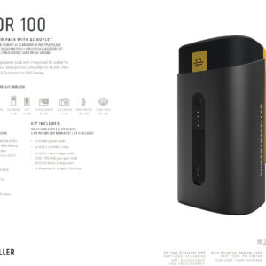 A highly-versatile, multi-voltage power pack with integrated AC outlet, the Condor 100 is capabe of charging laptops, SLR cameras, smartphones, and other 5V to 20V and 220V devices. Housing a massive 27000mAh battery, users can charge a plethora of electronic devices from the bi-directional USB-C port, dual USB ports and the very useful AC outlet. Featuring a 4 LED battery level indicator and carry strap, the Condor 100’s rugged design is waterproof & dustproof to IP65 Rating.