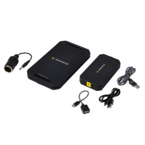 The kit includes a 5 watt solar panel which outputs 5V 1A via USB and opens to 210 degrees – perfect for fitting to a back pack or tent. The solar panel features MPPT technology which gives optimum charging in low light conditions and will not stop charging should a cloud pass over the panels.